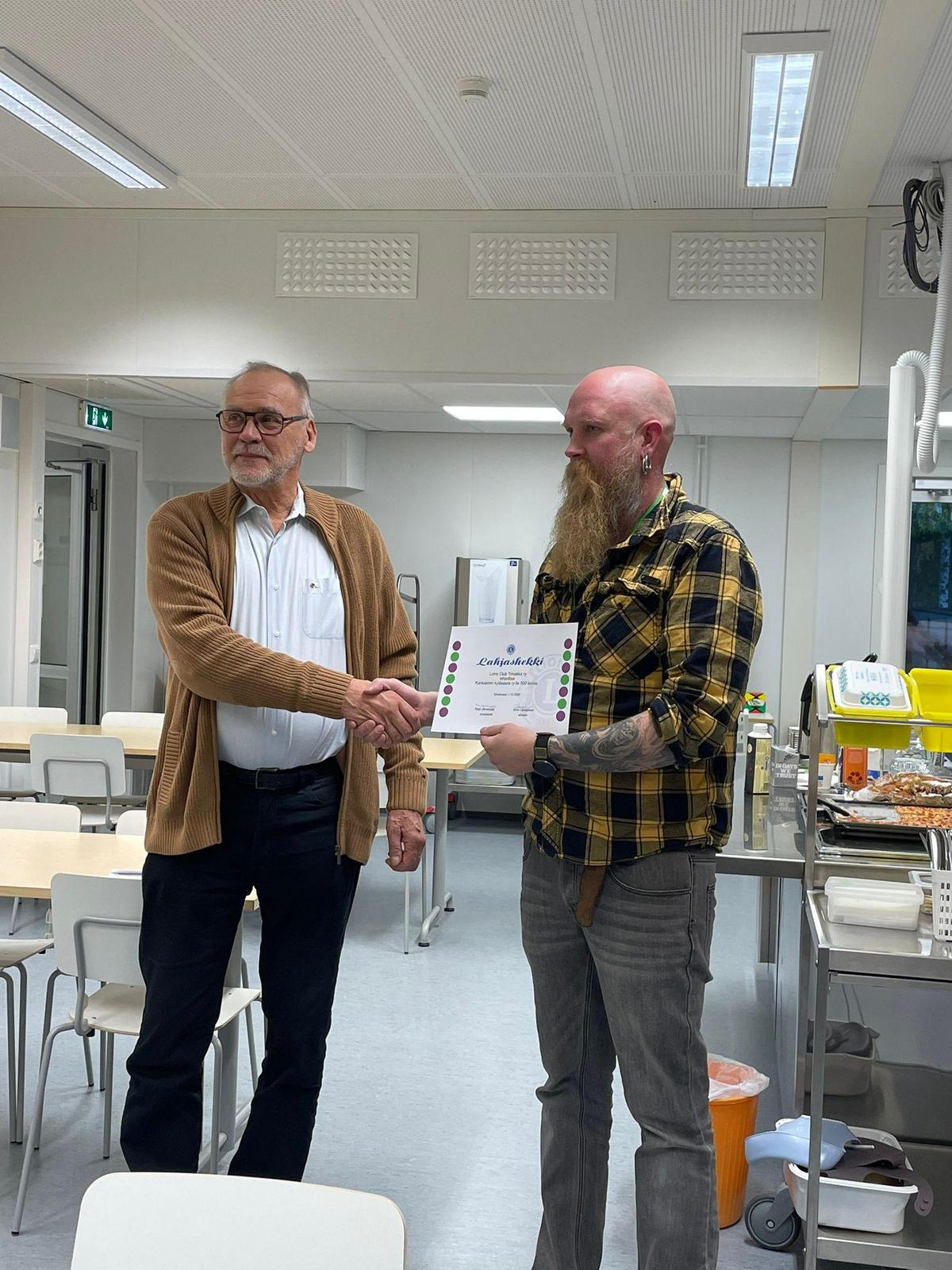 Kuvassa Lions Club Toivakan puheenjohtaja Reijo Järvenpää (vas.) ja Kankaisten kyläseuran puheenjohtaja Mikko Salo (Oik.)